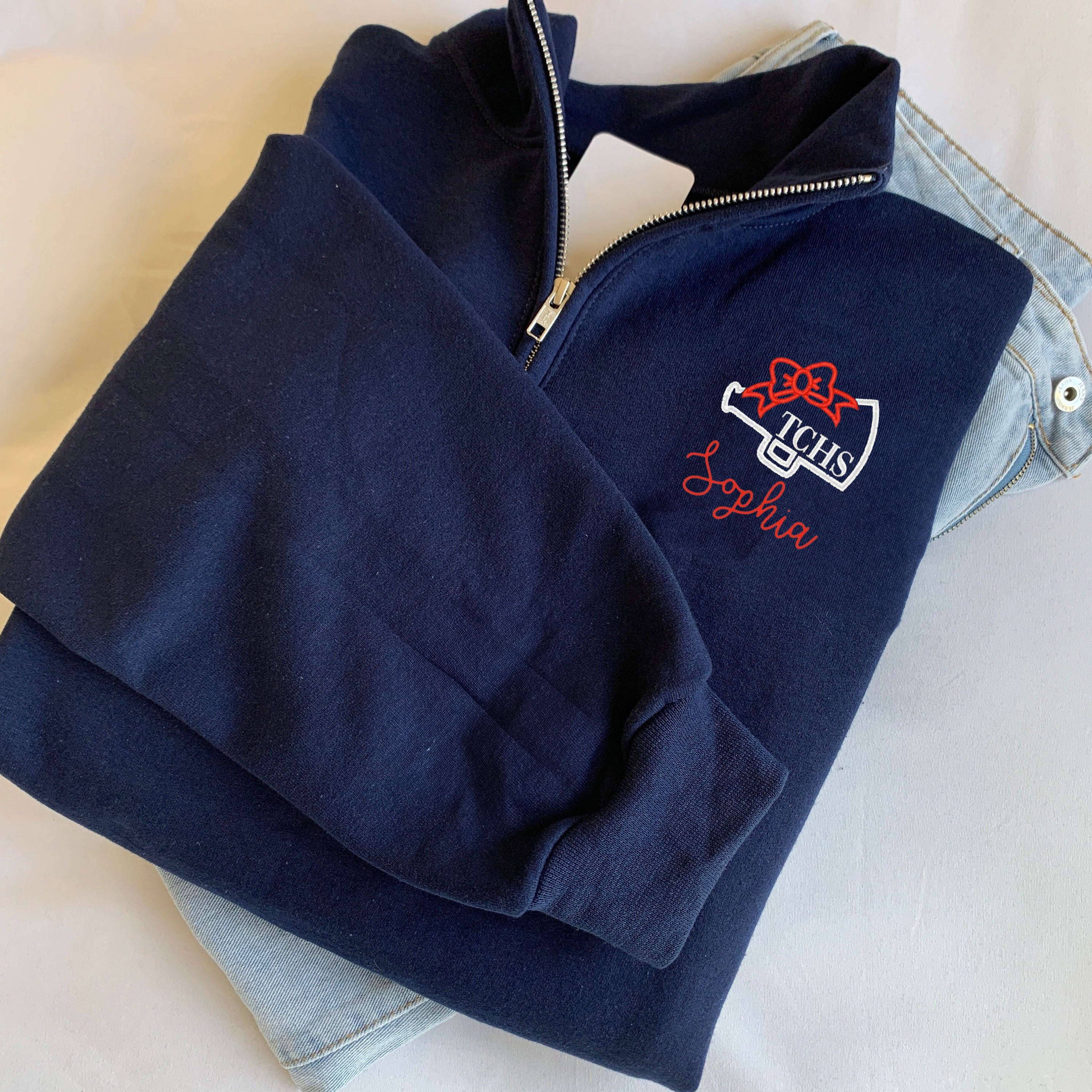 Cheerleader Sweatshirt, Cheer Team Quarter Zip, Embroidered Sweater