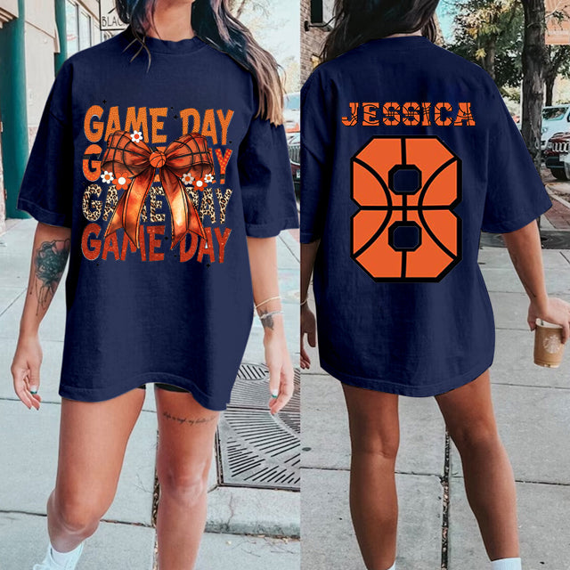 Custom Basketball Bow Print Shirt,Retro Game Day Print Shirt