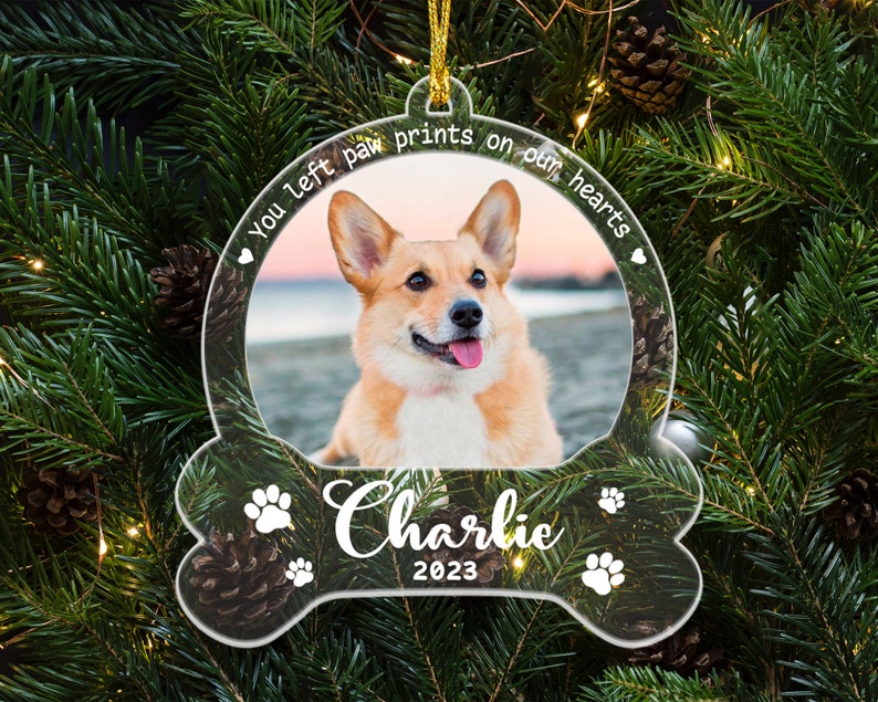 Acrylic Custom Dog Photo Ornament, Dog Memorial Gift, Loss of Pet, Pet Ornament, Christmas Keepsake, Dog Memorial Ornament, You Left Paw Prints