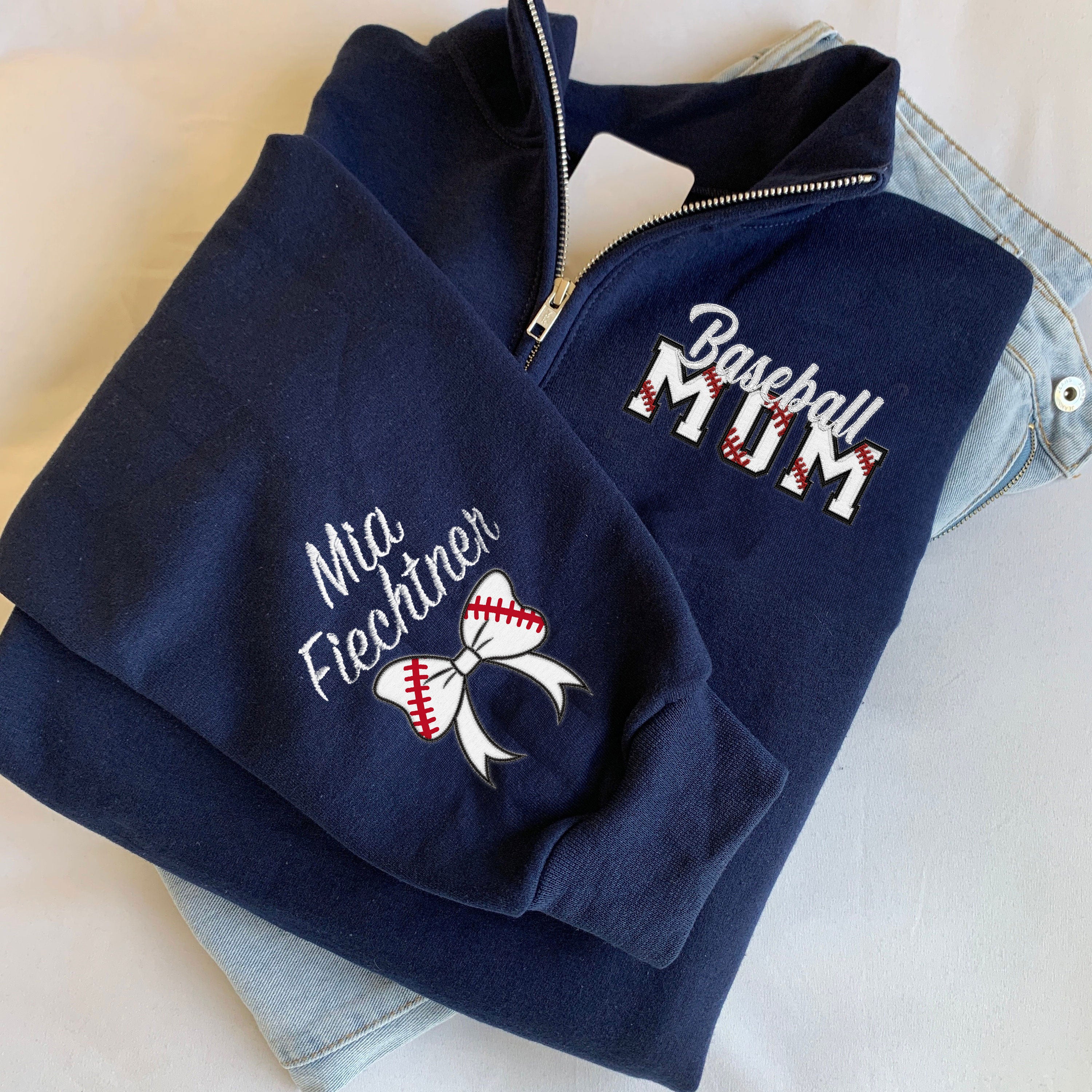 Custom Embroidered Soccer/Baseball/Football/Volleyball Mom Sweatshirt with Kid Name on sleeve Personalized MOM Shirt