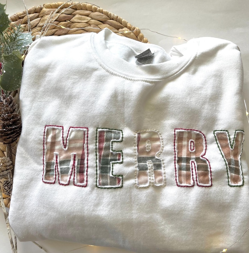 Custom Handstitched MERRY Sweatshirt, Personalized Sweatshirt, Christmas Gift