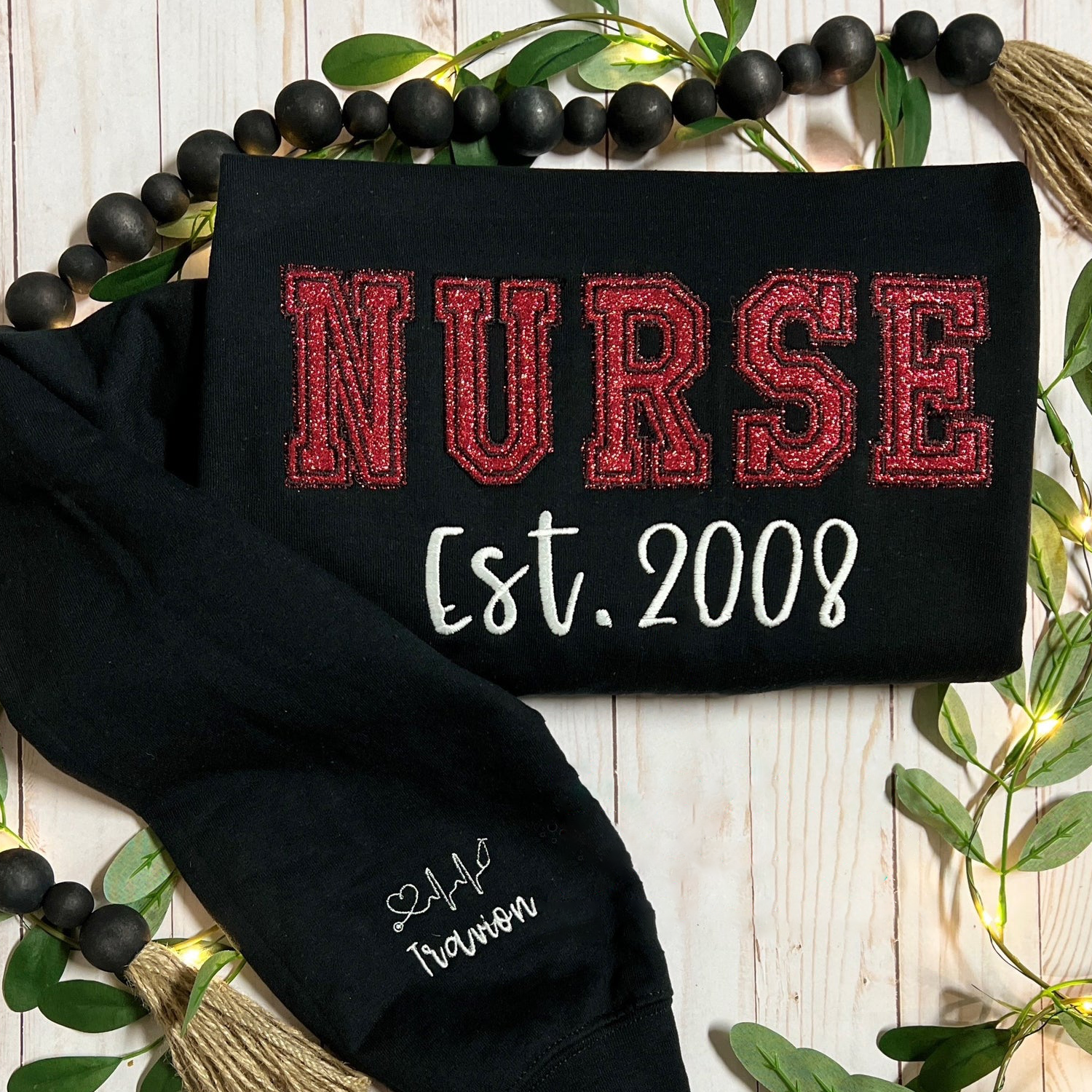 Custom Nurse Glitter Embroidered Sweatshirt
