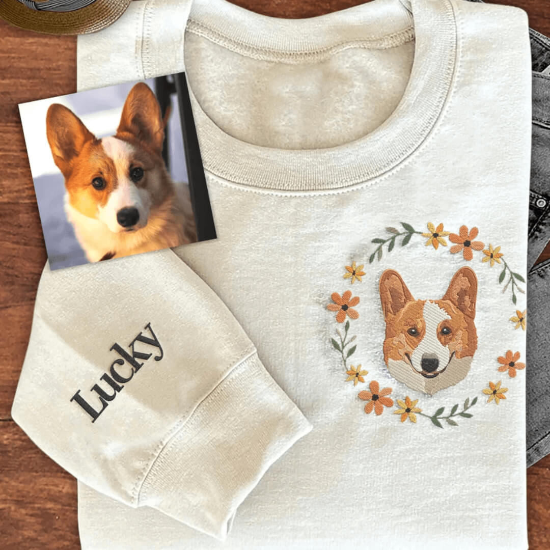 Custom Pet Embroidered Sweatshirt, Personalized Pet Face and Pet Name Sweatshirt, Embroidered Hoodie, Custom Gift, Dog Gifts