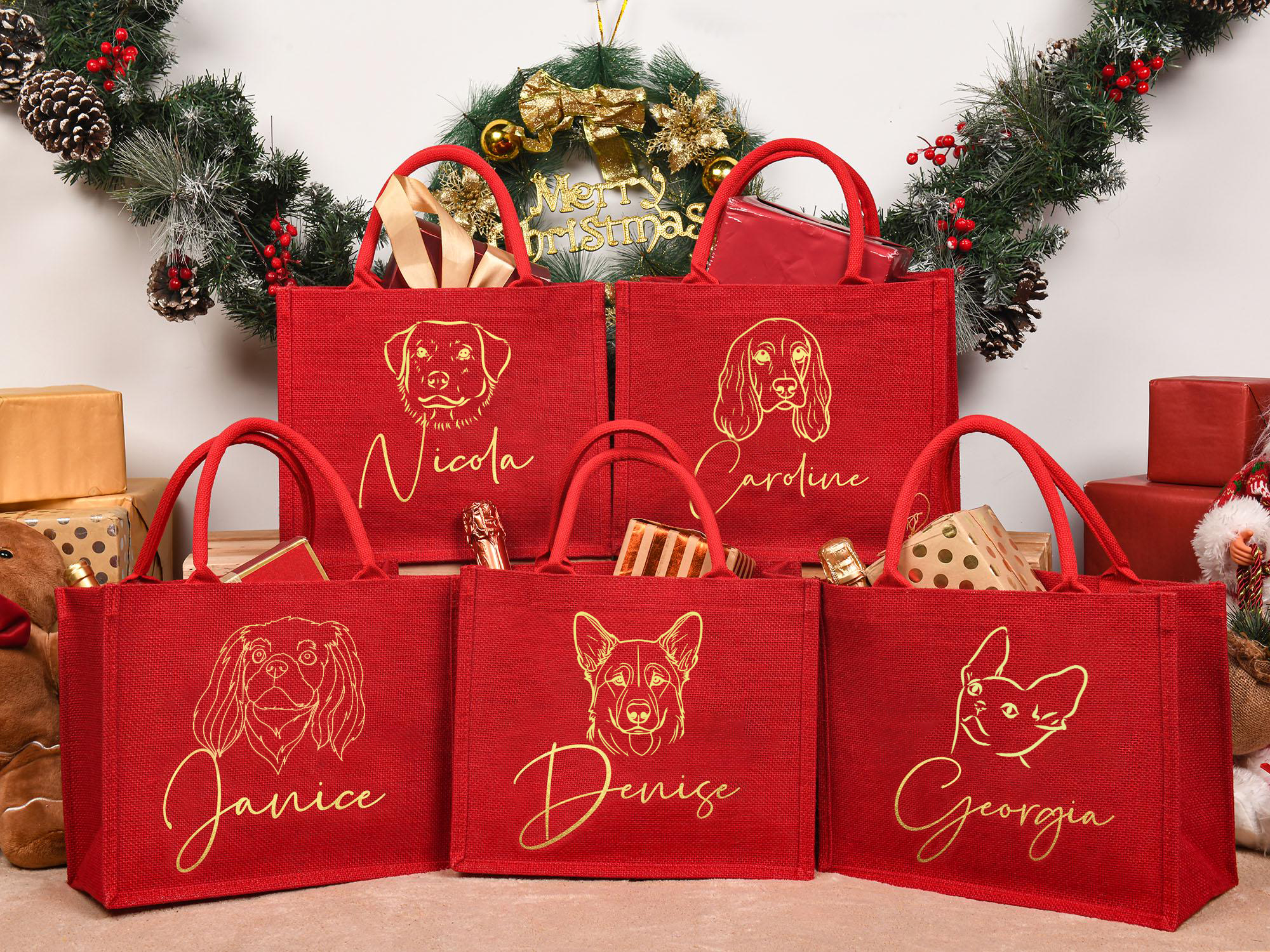 Looking for a charming and eco-friendly way to wrap your gifts this holiday season? Our Personalized Pet Portrait Embroidered Christmas Gift Bag is the perfect solution for pet lovers! 🎁 This festive red jute bag features a custom embroidered portrait of your pet, making it a unique, memorable gift bag that doubles as a keepsake.