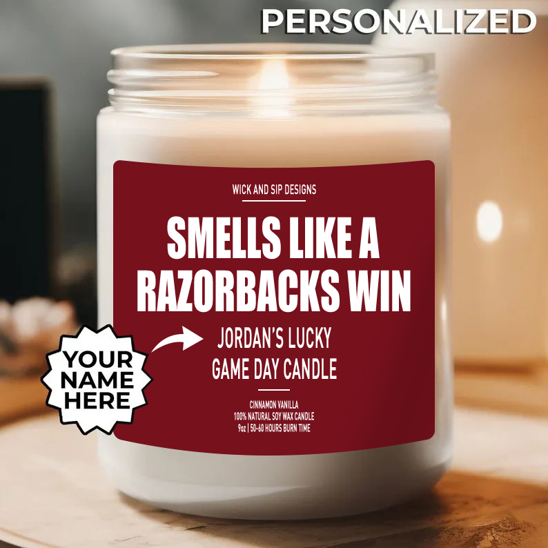 Personalized Smells Like A Arkansas Razorbacks Win Candle, Custom Arkansas Razorbacks Candle, Lucky Candle